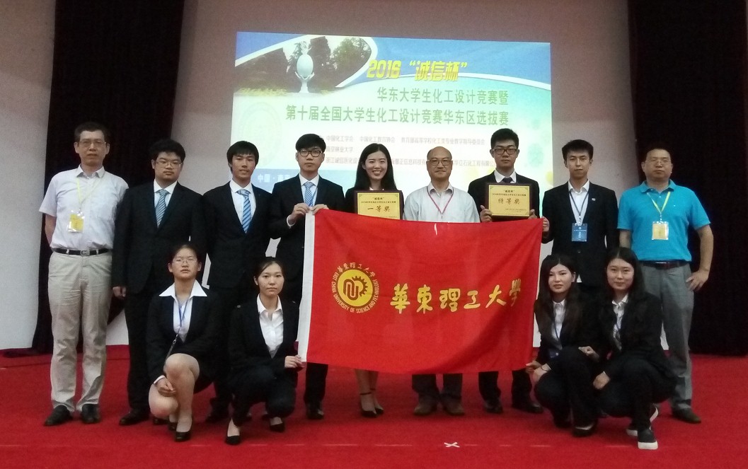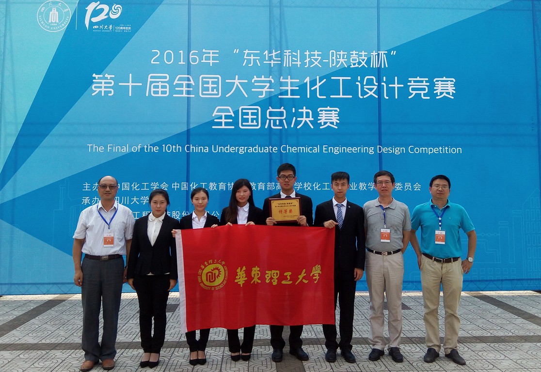参赛队Emoji团队在指导教师许志美、顾雄毅、李瑞江的带领下,在2016年“东华科技-陕鼓杯”第十届全国大学生化工设计竞赛全国总决赛中荣获特等奖。