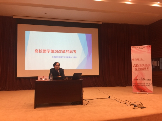 团委书记倪炜做题为《高校团校组织改革的思考》的主题讲座。讲座在奉贤校区敬贤堂举行。学院全体团学组织干部、班团骨干出席。