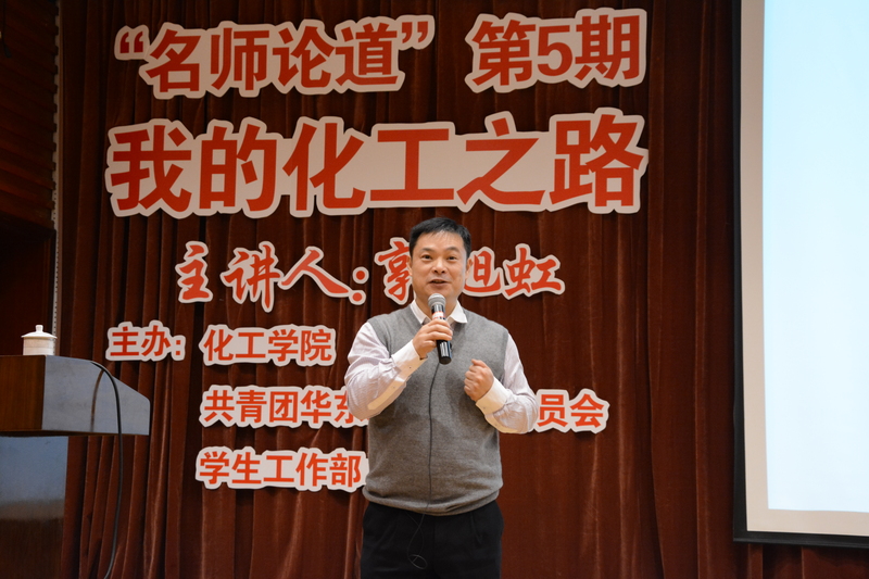 教授郭旭虹,以“我的化工之路”为题,向在场师生分享了他在化工领域中求学与研究的酸甜苦辣。校团委副书记何希与来自各学院的280余名学生共同感受了郭旭虹的“化工之路”。