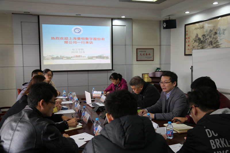 双方就VR技术如何应用在化工专业教学以及今后可能的合作模式进行了探讨。会后还一同前往艺术学院VR实验室进行现场交流。