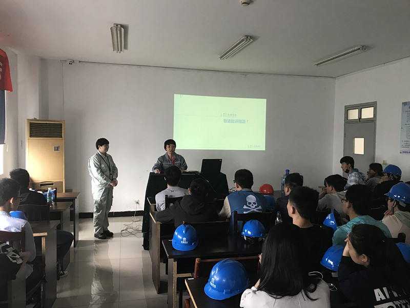 在随后的参观过程中,全体同学分为三个小组,在安环部经理助理陈国清、研发中心副主任曹华俊以及生产部专员陈汝的带领下,分别进行实地参观、交流学习,使同学们对合盛硅业的相关工艺流程以及有机硅产品生产情况有了一定的了解。