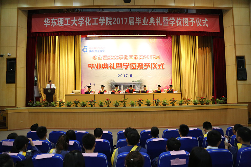 党委书记、院长朱学栋教授,化学工程与工艺学位评定分委员会委员于建国教授、周兴贵教授、龚欣教授、刘柏平教授、漆志文教授、周晓龙教授,学院2017届毕业研究生及教师代表、学生家长等共计200余人出席毕业典礼。仪式由副院长刘殿华教授主持。