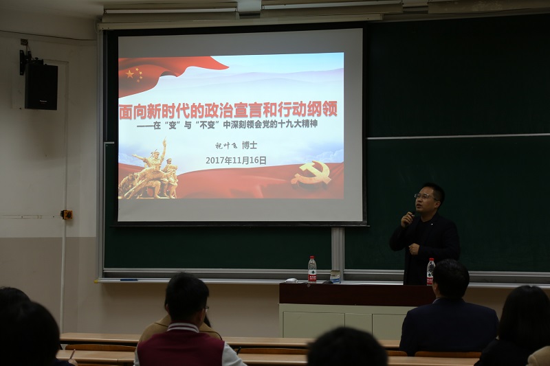 在八教306室举办党的十九大专题辅导报告会,邀请了上海市长宁区委党校老师祝叶飞博士作了题为《面向新时代的政治宣言和行动纲领——在“变”与“不变”中深刻领会党的十九大精神》的辅导报告,报告由 嗨皮漫画