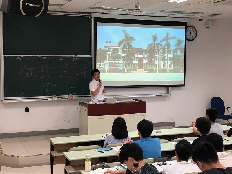 其次,16级翁新龙同学分享了自己的参军体会,他说:“年轻就是有无限的可能。”他始终坚持着当年选择当兵的初心,因为既然选择来当兵,那么说什么也得坚持,不为别人,就为成为更好的自己,并且两年来自己也是在为之不懈努力,他质朴的话语和坚定的信念也激励了现场很多想参军,想要报效祖国的同学。他建议同学们,部队生活让人生经历更加丰富,要自己亲身经历才能知道其中的奥义,“欲戴皇冠,必承其重”,是男儿就要去当兵,做军人就要勇争先,将荣誉高高举过头顶!