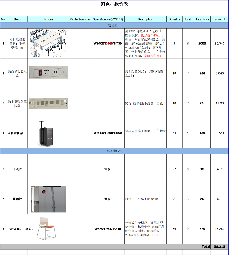 内容:奉贤校区实验七楼机房电脑桌椅及相应的弱电配件