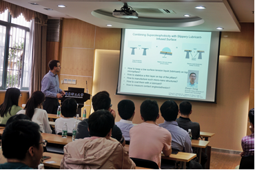 访问,并作了题为“Superhydrophobic and Liquid-Infused Micropatterns for Biological Applications” 的专题报告。报告会由 嗨皮漫画