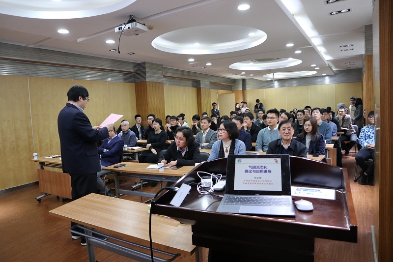 报告会上,李院士首先从气固散式和聚式两种流态化角度介绍了强化气固流场的调控手段,包括颗粒和流体设计等内因和操作条件、外力场、床型和内构件设计等外因调控方法。随后就内构件设计调控方法详细阐述了挡板对气固流化床中宽颗粒停留时间的调控影响,并从计算机模拟角度说明了对气固流场非均匀结构准确预测的重要性,介绍了两流体模型与局部构效模型相结合在流化床反应器模拟调控与放大的广阔应用前景。最后,以前瞻性和开放性视野提出了气固流态化学科理论和技术应用未来的研究方向。报告会结束后,李院士与参会师生就平时科研工作中碰到的疑难问题进行探讨交流,耐心解答大家提出的问题。