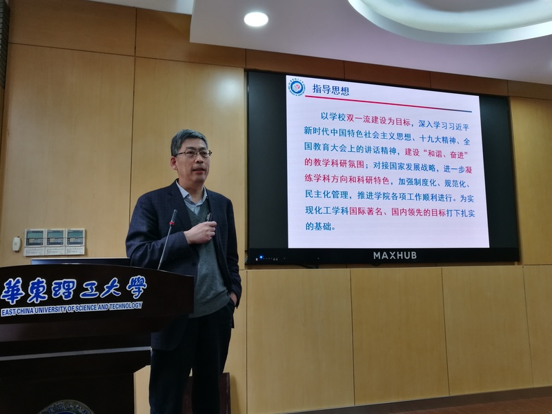 院长李春忠向大会作了“凝心聚力、砥砺奋进、扎实推进一流学科建设”的学院2018年度工作报告,报告从学科建设,人才队伍建设,科学研究,教学工作,学生工作,安全稳定工作等方面全面回顾总结了学院在2018年所取得的成绩。2019年度学院要重点围绕化工一流学科建设,凝练学科方向,推进高端人才引进培养,进一步提升国际影响力的工作目标。提出了在人才队伍和团队建设方面,提升教师活力,加大高端人才引进力度;加强学科布局和建设,做强传统强势学科,扶植新兴学科方向;加强平台和基地建设,国家重点实验室迎接重组和评估;推进教育和教学工作,迎接国际ABET认证和课程体系建设;培育重大项目和成果,联合申报重大项目,推进国家级成果奖;推进国内外交流合作,扩大化工学科的国际排名和影响力等工作任务。报告还就2018年学院的财务收支状况向代表们进行了汇报。