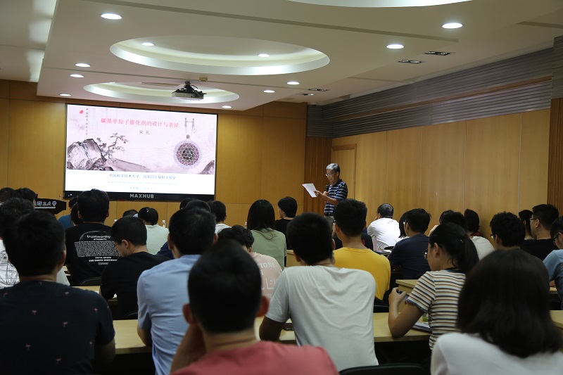 宋礼教授介绍了所从事的研究方向,即碳基单原子催化剂的设计与表征。单原子催化剂比传统纳米颗粒更能发挥金属原子尤其是贵金属的利用率,同时量子尺寸效应、局域结构效应以及金属-载体界面效应更加明显,这使单原子催化剂在催化反应过程中能够表现出高活性和高选择性。宋礼教授首先对碳基单原子催化剂做了介绍,阐明了团队研究的出发点和目标,主要基于材料的精细表征,研究不同维度纳米碳载体的单原子催化剂。后又介绍了一维碳纳米管和二维石墨烯负载M-N-C分子构型单原子催化剂以及零维碳纳米洋葱负载铂单原子催化剂的设计及其载体效应。