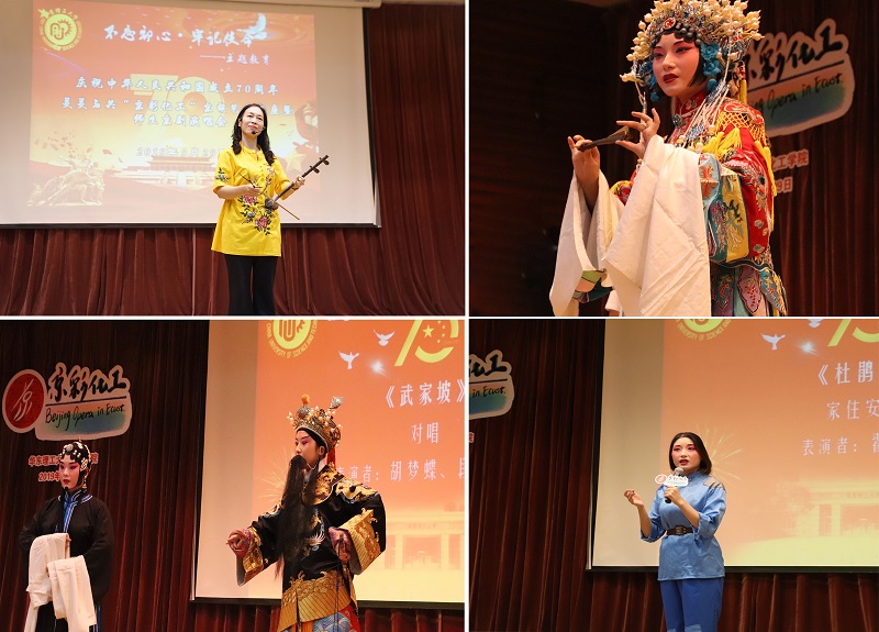 在奉贤校区敬贤堂举办美美与共“京彩化工”京胡艺术讲座暨师生京剧演唱会,以一场传统文化盛宴为祖国70华诞庆生。上海京剧院国家一级琴师周晓铭受邀带来精彩的京胡艺术讲座。闵行区政协委员、闵行区京剧票友协会会长余剑强,党委副书记高艺霞,校工会京剧社社长李廷雨、学院全体本科生辅导员及300余名学生参加了本次活动。