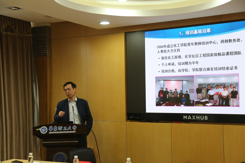 及资环学院的主要课程团队、实验中心及实习基地为依托,面向两个学院已培养了近60名青年教师。此外,许志美着重介绍了基地培训机制,每位青年教师在带教导师的指导下,逐一完成课程教学、实验教学、实习教学、教学论文以及工程设计能力的培训,旨在培养青年教师的教学素养和教学基本功。