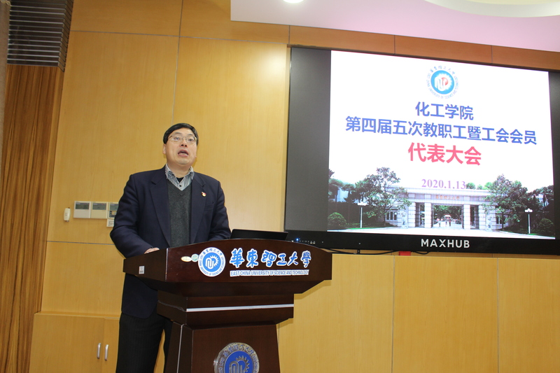 上午,全体代表及教职工听取了院长李春忠向大会作的“凝心聚力、砥砺奋进、扎实推进一流学科建设”的学院2019年度工作报告。报告从学科建设、师资队伍建设、科学研究、本科教学、研究生培养、学生工作、安全工作等方面全面回顾总结了学院在2019年所取得的成绩。2019年度学院围绕“双一流”建设目标,结合“不忘初心、牢记使命”主题教育,强化规范管理,营造“和谐、奋进”科研教学氛围,对接国家发展战略,以一流本科、学科建设、重大项目和成果、人才和团队等为重点推进学院各项工作顺利开展。进一步凝练了学科方向,突出学院的特色和优势;构建学科研究平台,助力化工一流学科发展;建章立制,引育并重,青年人才引进培养取得初步成效;科研经费取得新的突破,教学成果丰硕;坚持价值引领,推进三全育人。报告还就2019年学院的财务收支状况向代表们进行了汇报,部署了2020年工作重点。