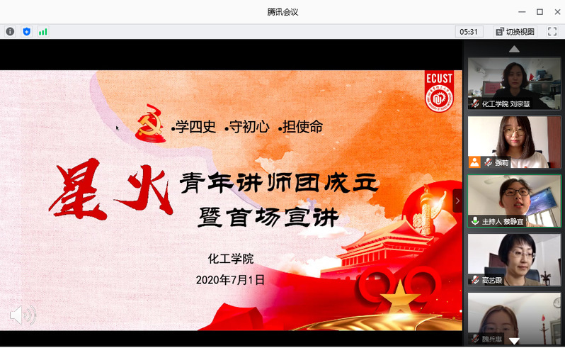 党委副书记高艺霞出席会议,全体辅导员、“星火”青年讲师团成员、全体学生党员、入党积极分子以及团员青年通过腾讯会议、化工青年集结地站直播平台参加活动。本次活动由星火社社长蔡静宜主持,直播人气达3000余人次。