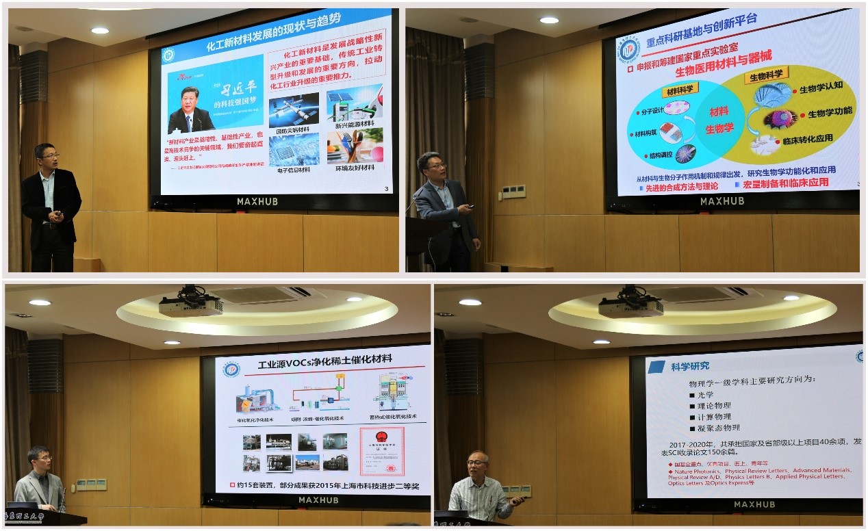 、材料学院、化学学院和理学院分别结合本学院的学科特点和科研情况,做了题为“化工新材料科技创新领域发展规划”的报告,向与会专家、领导及老师介绍了各学院近年来在化工新材料领域的研究进展及取得的成果,并对以后的重点建设目标和方向作了展望和规划。
