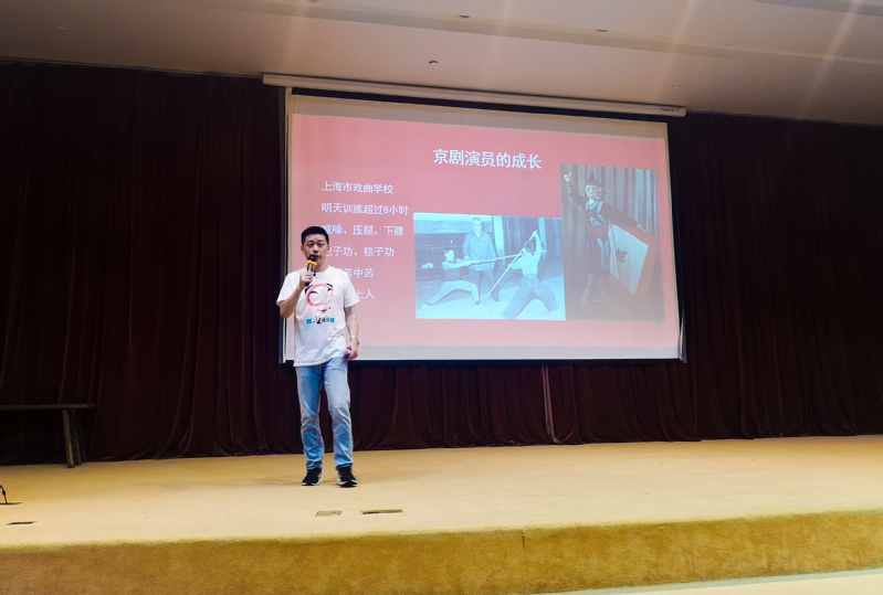 邀请上海市非物质文化遗产(京剧)项目代表性传承人、上海京剧院国家一级演员严庆谷带来了一场《小丑说戏——京剧艺术导赏》的戏曲讲座。讲座由京剧票友社指导老师姜贤武主持, 嗨皮漫画