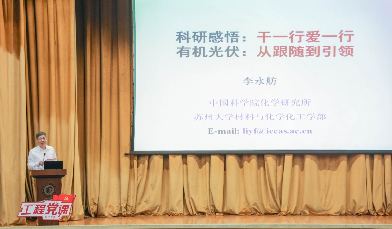 在徐汇校区逸夫楼报告厅举办“工程党课”。中国科学院院士、高分子化学家李永舫以“科研感悟:干一行爱一行;有机光伏:从跟随到引领”为主题,带来了一场别开生面的“工程党课”。活动由 嗨皮漫画