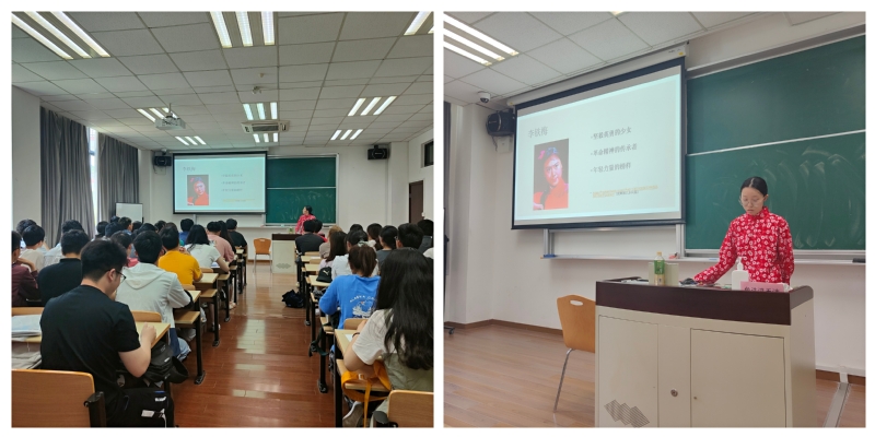 “开天辟地光辉见。一百年,沧桑巨变换新颜。一百年,风雨兼程勇向前……”何熙文用华理庆党百年原创京歌《百年再启航》中的经典唱段开始了本此讲座。通过对京剧《娄山关》《平原作战》《奇袭白虎团》《江姐》等红色经典剧目片段的现场演绎和深入解读,带领同学们重温了一个个感人至深的故事,生动地诠释了100年来共产党人始终与人民同呼吸、共命运、心连心,永远把人民对美好生活的向往作为奋斗目标。