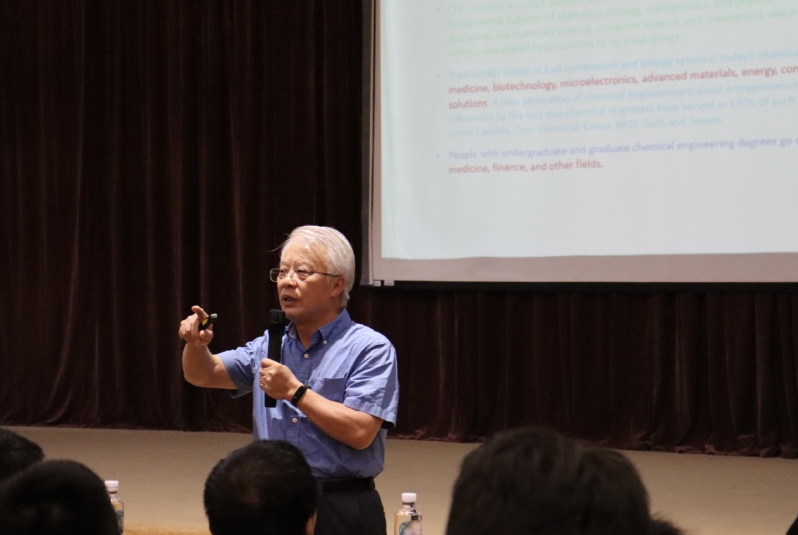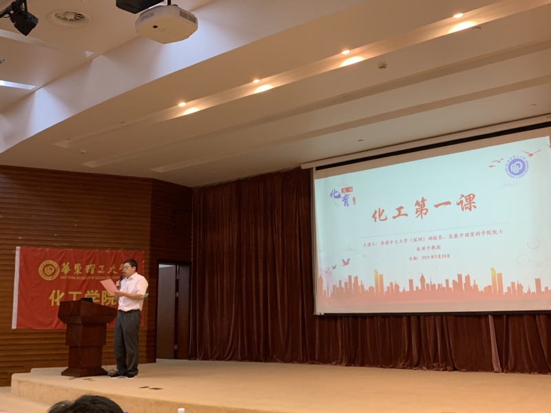 报告中,朱世平教授解释了科学的起源、工科与理科内涵差异以及科学与工程的区别与联系等当代学科理论知识,进一步地阐明了化学工程领域的发展历程、探索应用和前景展望,并用一句话概括出化工的定义,即化工是有关利用设计、优化和控制手段,安全、可持续和盈利的方式生产与加工材料与化学品的学科。他结合自身的求学、科研经历分享了他与化工专业结下的不解之缘,用一首打油诗“化工之歌”幽默地介绍了相关概况,鼓励化工学子在道德、专业、素质等方面全面培养,奋力书写新时代学校事业发展新篇章,努力早日成为全面发展的社会主义建设者和接班人。