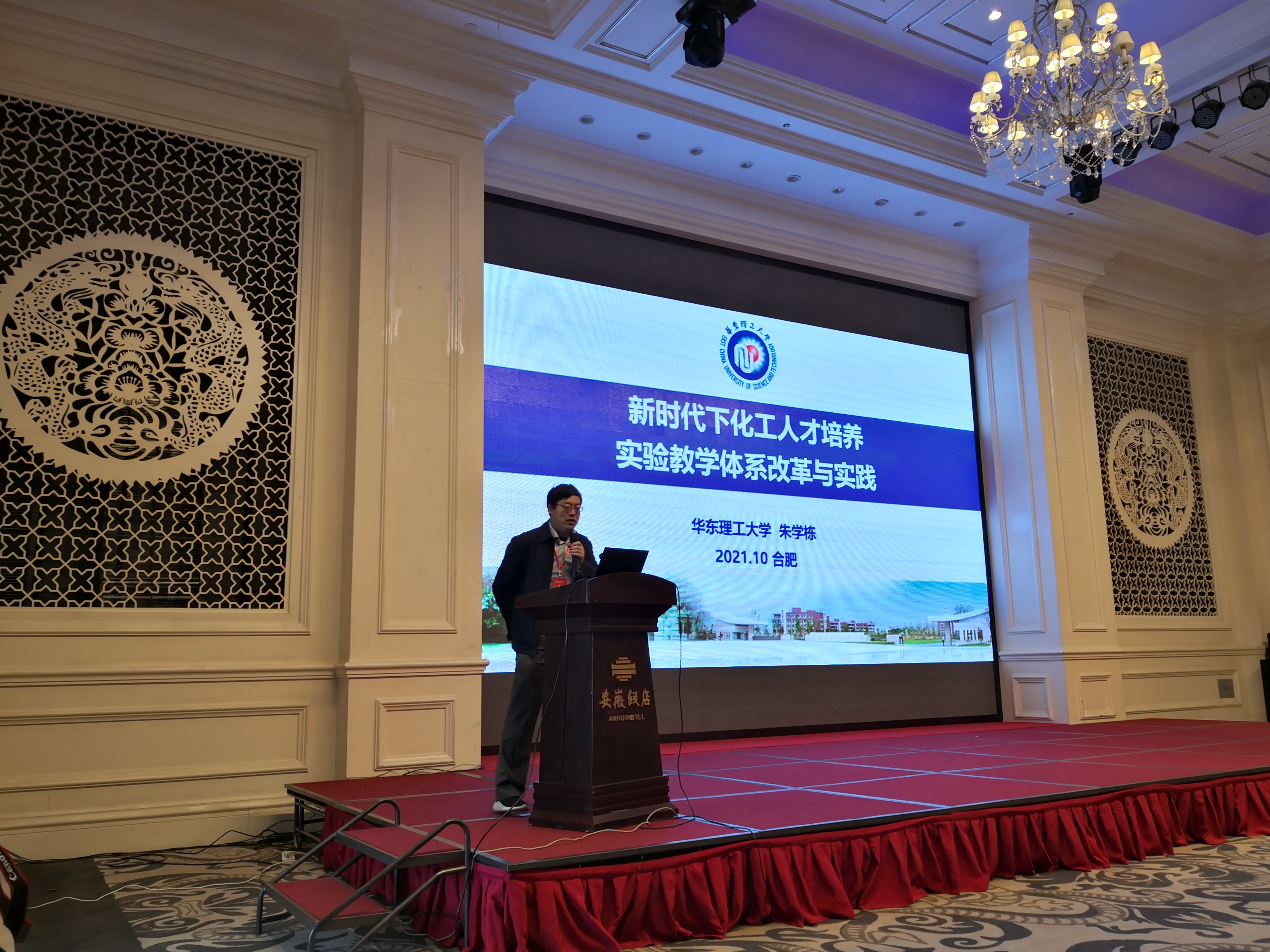 党委书记、化工实验教学中心主任朱学栋教授带队参加了本次研讨会,并做题为“新时代下化工人才培养实验教学体系改革与实践”的大会报告。报告主要介绍了,在“双碳”战略实施及“新工科”理念实践的背景下,为积极响应国家号召培养高质量人才,我院在化工专业实验教学的改革与探索中,通过重构多层次、模块化实验教学体系,将科研成果融入实验教学,开展探究式、自主式学习等方式,逐步提升学生解决复杂工程问题能力。我们还通过建设“绿色”实验案例,构建风险评估-安全准入-动态检查机制,在加强实验室安全管理的同时,厚植绿色发展观。