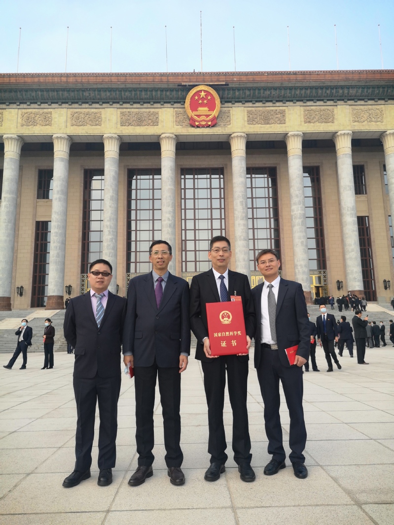 院长李春忠教授领衔,材料科学与工程学院江浩、杨化桂、朱以华、沈建华等团队成员完成的“限域反应构建晶态能量转换材料及调控机制”科研成果喜获国家自然科学二等奖,李春忠作为获奖代表上台领奖。