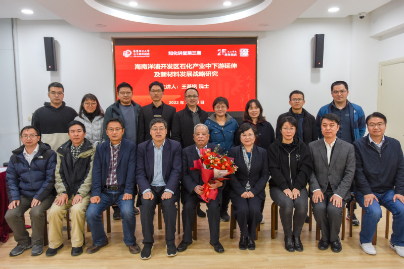 王基铭院士的报告首先介绍了海南省石化新材料院士工作站的组建初衷、主要工作内容以及取得的阶段性成果。该院士工作站依托海南炼化,为海南省首个石化新材料院士工作站,核心团队由6位中国工程院院士和20名我国石油化工领域知名专家组成,着力推进洋浦绿色化工新材料全产业链国际化基地和海南自贸港建设。接着,王基铭院士重点介绍了以洋浦石化园区乙烯、PX及石化原料为基础,向石化产业中下游延伸及新材料发展的战略规划。报告引起了师生的热烈讨论,王基铭就石油化工学科发展前景以及化工新材料等师生关心的热点问题逐一进行了解答,并勉励大家要充分发挥化工学科优势和专业所长,着眼未来,助力提升石油化工技术水平,为我国新材料的发展提供优质能源与化工原料。