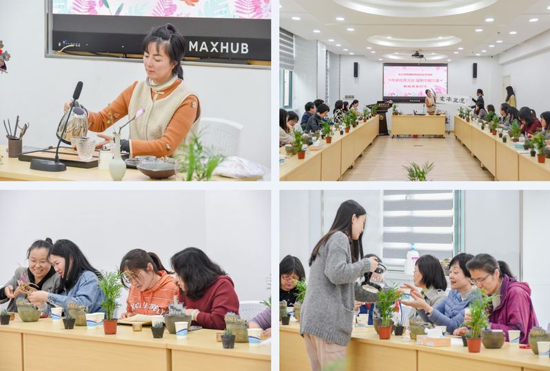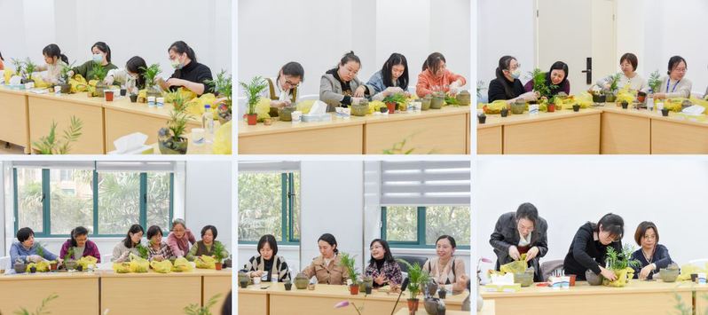 在微景观DIY制作环节,林琳老师介绍了微景观工具的使用方法、植物养护等相关知识,女教师们根据自己的喜好制作微景观,体验创作的喜悦,并收获了自己的微景观作品。