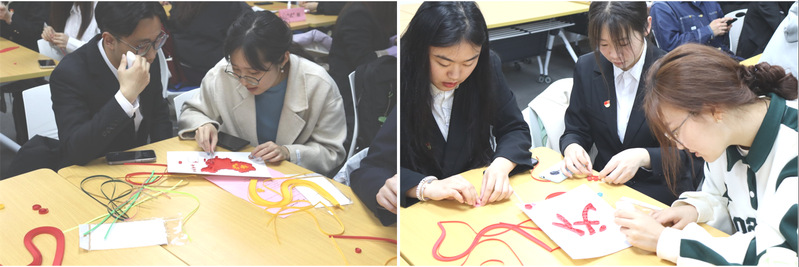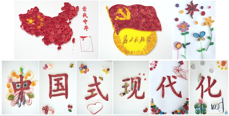 入党宣誓仪式结束后,全体党员和入党积极分子用衍纸点亮入党初心。他们将五颜六色的衍纸条进行卷曲、弯曲和捏压,亲手制作出“中国共产党党徽”“中国地图”图案及“中国式现代化”字样,并送上对党和国家、对华理和 嗨皮漫画