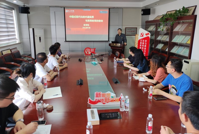 党委书记朱学栋以“中国式现代化的内涵实质与高等教育的使命”为题讲授专题党课,研究生工艺所第二党支部及其他支部部分党员参加了学习。