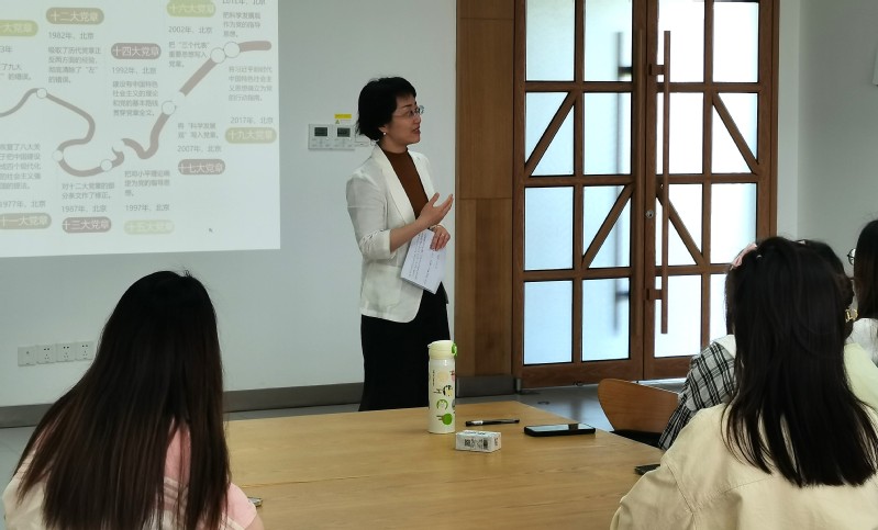 活动伊始,曹妙带领全体党员一起回顾了从党的一大《中国共产党第一个纲领》到党的二十大《中国共产党章程》的发展史,并在党的十九大《中国共产党章程》的基础上,围绕总纲、党员和党的干部、党的基层组织和党组、党的纪律和纪律检查机关等内容,详细阐述了党的二十大《中国共产党章程》的变化细节以及变化的原因与内涵。