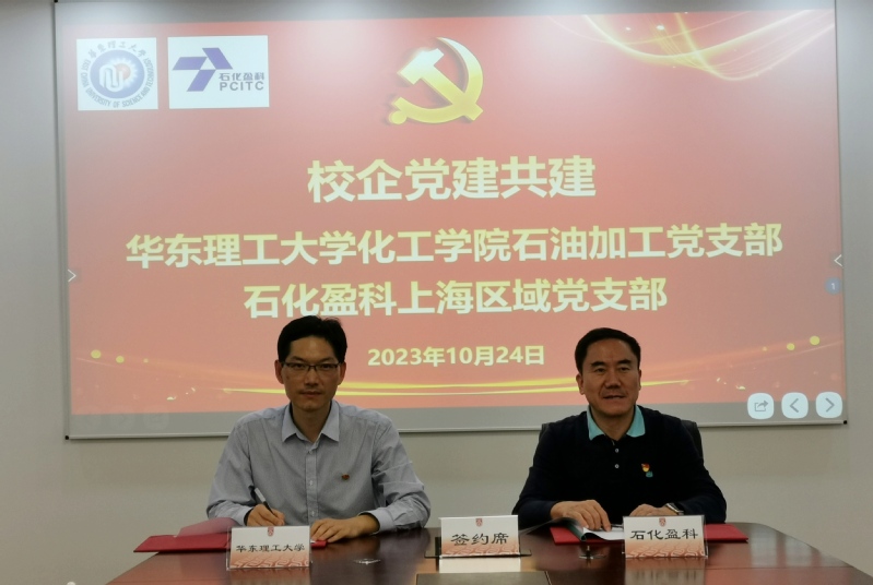 石油加工党支部书记与石化盈科上海区域支部书记冯新国代表双方签署党建结对共建协议。