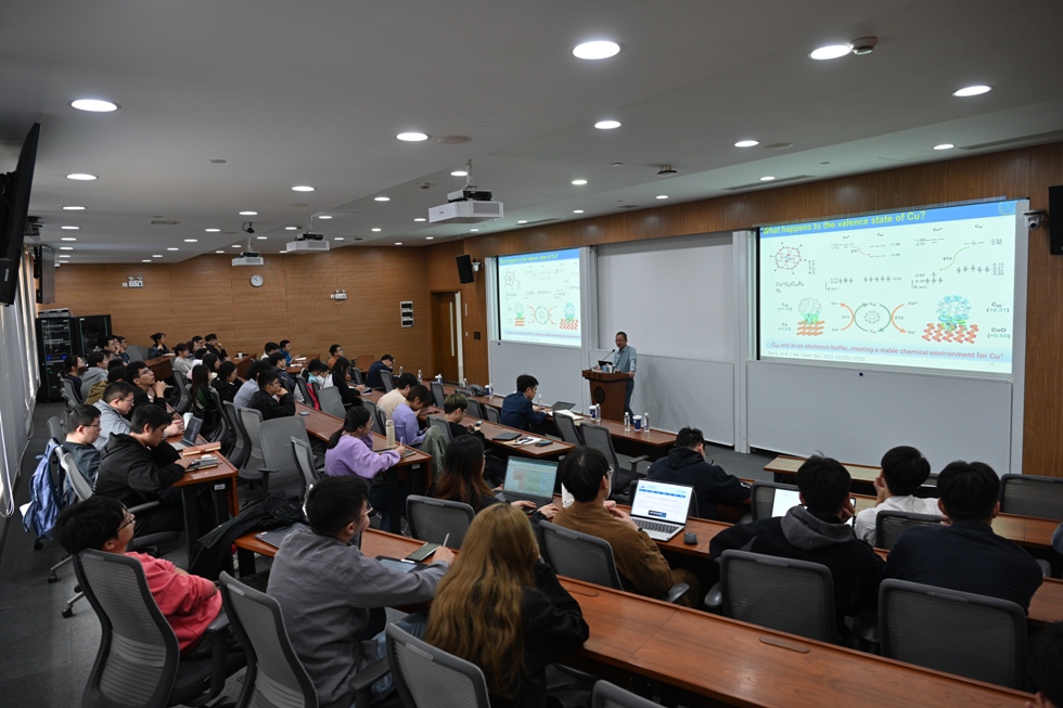 报告中,谢院士从“张力释放”和“局域芳香化”这两个稳定含相邻五元环的新型富勒烯的原理出发,详细阐述了富勒烯作为单分子器件的特性,以及其作为电子受体材料或电子缓冲材料在催化反应中的促进作用。谢院士还介绍了团队在富勒烯促进铜催化剂选择性加氢制醇方面的研究工作。这次报告引发了与会师生们的热烈讨论。谢院士耐心解答了与富勒烯包覆铜颗粒催化剂的活性位点以及富勒烯的电子缓冲性对不同金属能级的搭配等问题,并且通过分享团队研发过程中所面临的各种困难,鼓励大家坚定信心,勇于尝试,不断开展前沿性研究,为 嗨皮漫画