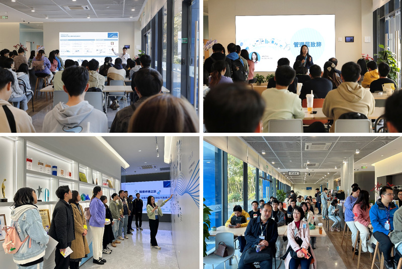 最后一站,师生来到林德总部。林德大中华区副总裁、人力资源部负责人毛凌云,清洁氢能业务发展总监Lawrence Koh等先后带来精彩分享。同学们与林德进博会展台现场连线,在主持人的带领下共同感受林德亮相第六届中国国际进口博览会的精彩呈现,深入了解林德的创新实力和技术底蕴。最后,师生参观了林德嗨皮漫画墙与办公区,感受林德多元化和包容性的嗨皮漫画,了解员工福利、职业发展计划等,赋能学子职业发展规划。
