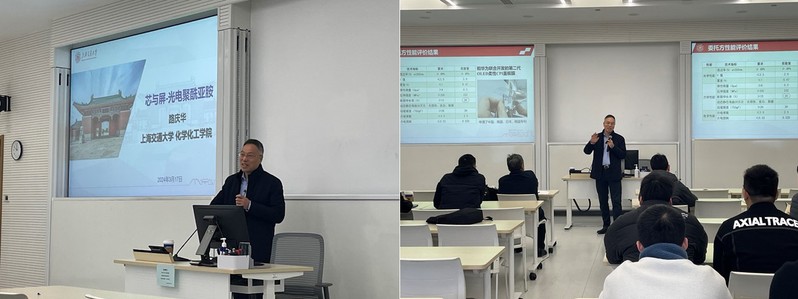 目前可折叠屏手机、柔性穿戴、5G技术、光刻胶及人工智能与芯片技术等这些当前科技领域最为热门的话题背后,都有核心材料—聚酰亚胺(PI)的身影。聚酰亚胺具有优异的综合性能,成为当今最为耀眼的明星材料,在高科技领域得到了广泛应用。路庆华教授详细讲述了光电功能聚酰亚胺的基础与应用开发。讲座从聚酰亚胺的基本特征讲起,逐步延伸到柔性OLED显示、封装与显示光刻胶、本证彩色与黑色聚酰亚胺等方面,结合应用需求、分子设计原理和性能调控方法展示聚酰亚胺材料的灵活设计特征。