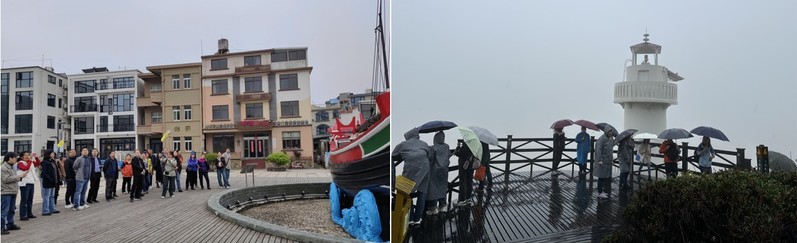 随后,教师们以满腔热忱和稳健的步伐,开始了嵊泗左岸公路红色路线的徒步之旅。他们先后参观了东海渔村的渔俗广场和渔村壁画,踏着石阶在礁石群中穿行,最终通过长达千米的木栈道,顺利抵达了风景秀丽的“陆尽头”六井潭景区。