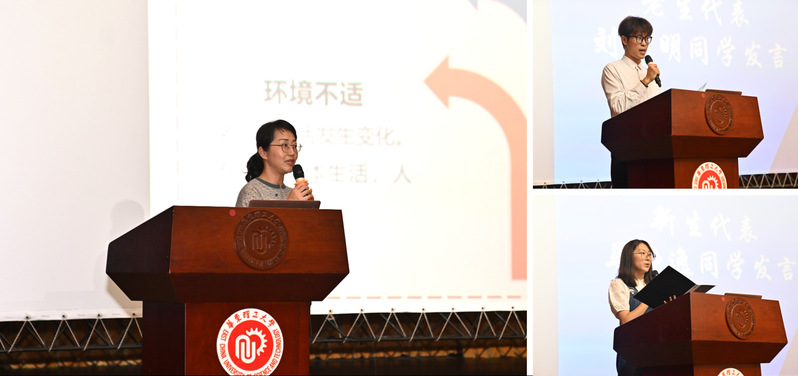 2024级本科生开学典礼暨新生家长会在奉贤校区大学生活动中心剧场举行。副校长李春忠,资源循环科学与工程专业责任教授于建国, 嗨皮漫画