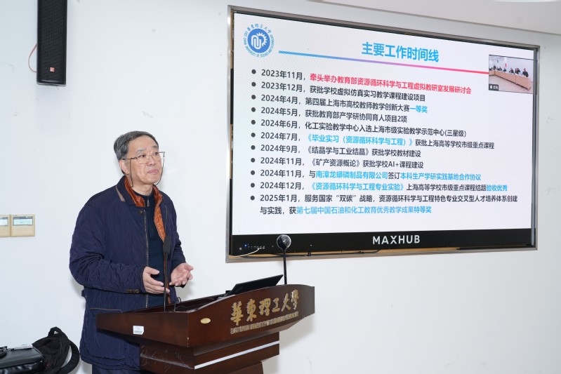 资源循环科学与工程专业2024年发展状况”报告,回顾了2024年资源循环科学与工程专业的课程、教材及人才队伍的建设情况和取得的重要成果。青年教师顾帅、陈杭和刘程琳副教授分别对“资源循环过程基本原理课程”“资源循环过程人工智能辅助开发”“资源循环科学与工程专业实验”课程建设及2025级资源循环科学与工程专业培养方案修订情况进行了详细汇报。