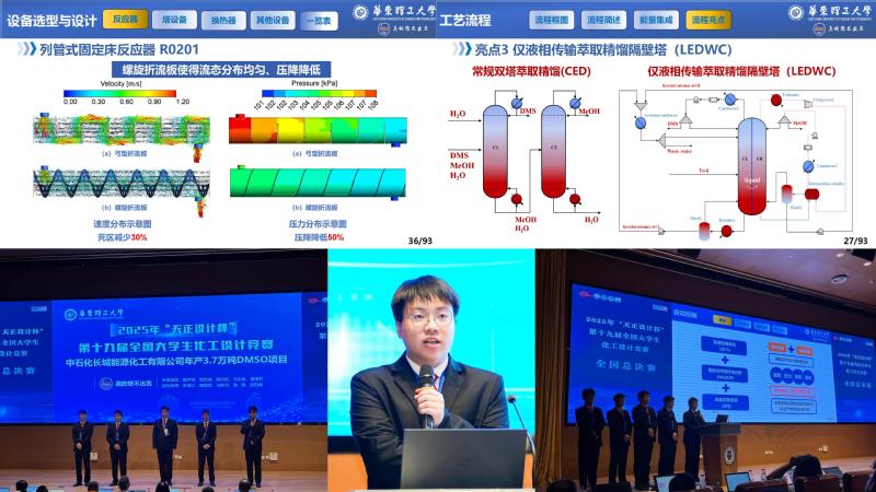 团队以某厂生产废气中的硫化氢为原料,采用二氧化氮氧化法设计了年产3.7万吨二甲基亚砜项目。历经7个月,团队成员从项目可行性研究、工艺方案比选论证、流程搭建、设备设计及选型、自动控制、总图布置、车间布置、安全评价、经济分析等多个方面,对项目进行精心设计,大胆应用四大创新:反应器结构创新、过程强化技术创新、分离技术创新、过程设备创新,符合中国制造2025的要求。团队的5位指导教师为李瑞江、陶国忠、马宏方、雷明、彭阳峰,另有沈荣春、魏永明、杨座国、杨敬一、黄子宾及袁佩青等6位教师深度参与了竞赛指导。 嗨皮漫画