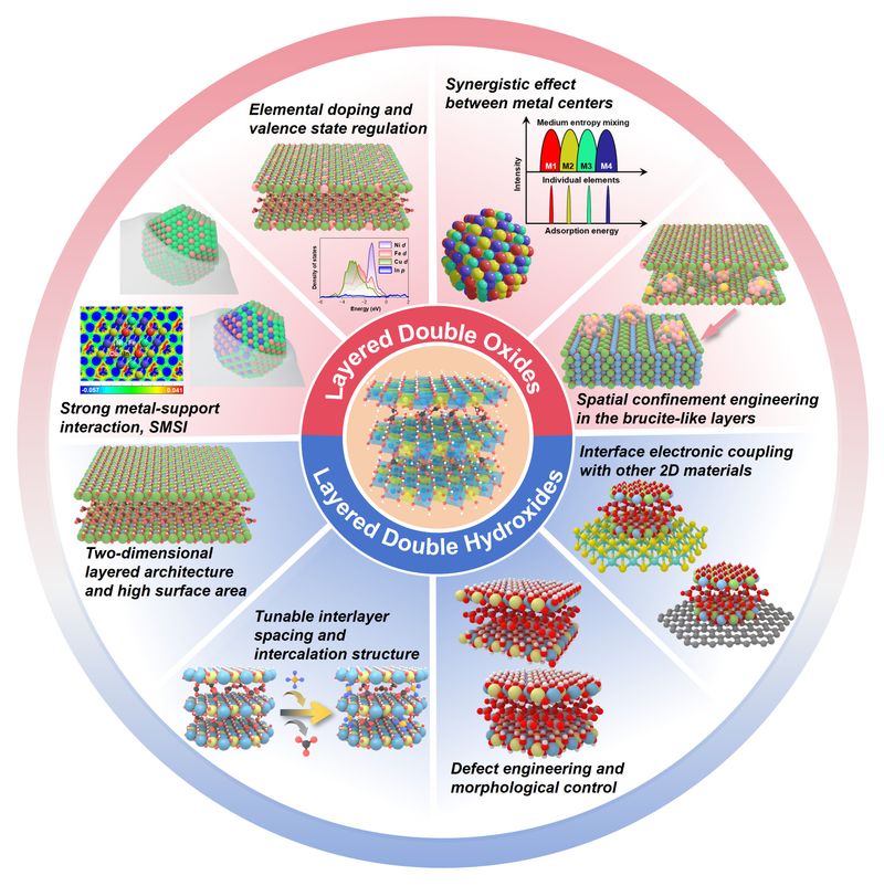 催化反应工程团队段学志教授和曹约强特聘研究员在层状双金属氢氧化物(Layered Double Hydroxides, LDHs)基催化剂研究方面取得重要进展。受国际知名学术期刊Angewandte Chemie International Edition邀请,结合团队近年来基于LDHs材料的系列研究工作回顾总结了LDHs及其衍生催化剂在精准催化领域的研究进展,撰写了题为“Layered Double Hydroxides as Building Blocks for Precise Catalysis”的综述论文,深入探讨了其在光、电、热催化中活性位点精准调控方面的应用,为设计高效、稳定的新型催化剂、推动可持续能源转化与绿色化工发展提供借鉴。