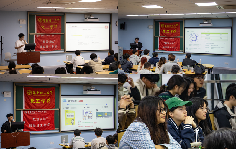 在经验分享环节,狄晋弘、魏召烨、周博伦三位同学分别从择校范围、时间规划、信息获取、心态调整等方面展开介绍,鼓励同学们立足化工学科优势,将考研视为一场基于数据获取与优势积累的精准部署,以扎实的专业能力与良好的心态迎战考研,实现个人成长与职业发展目标的双向并进。